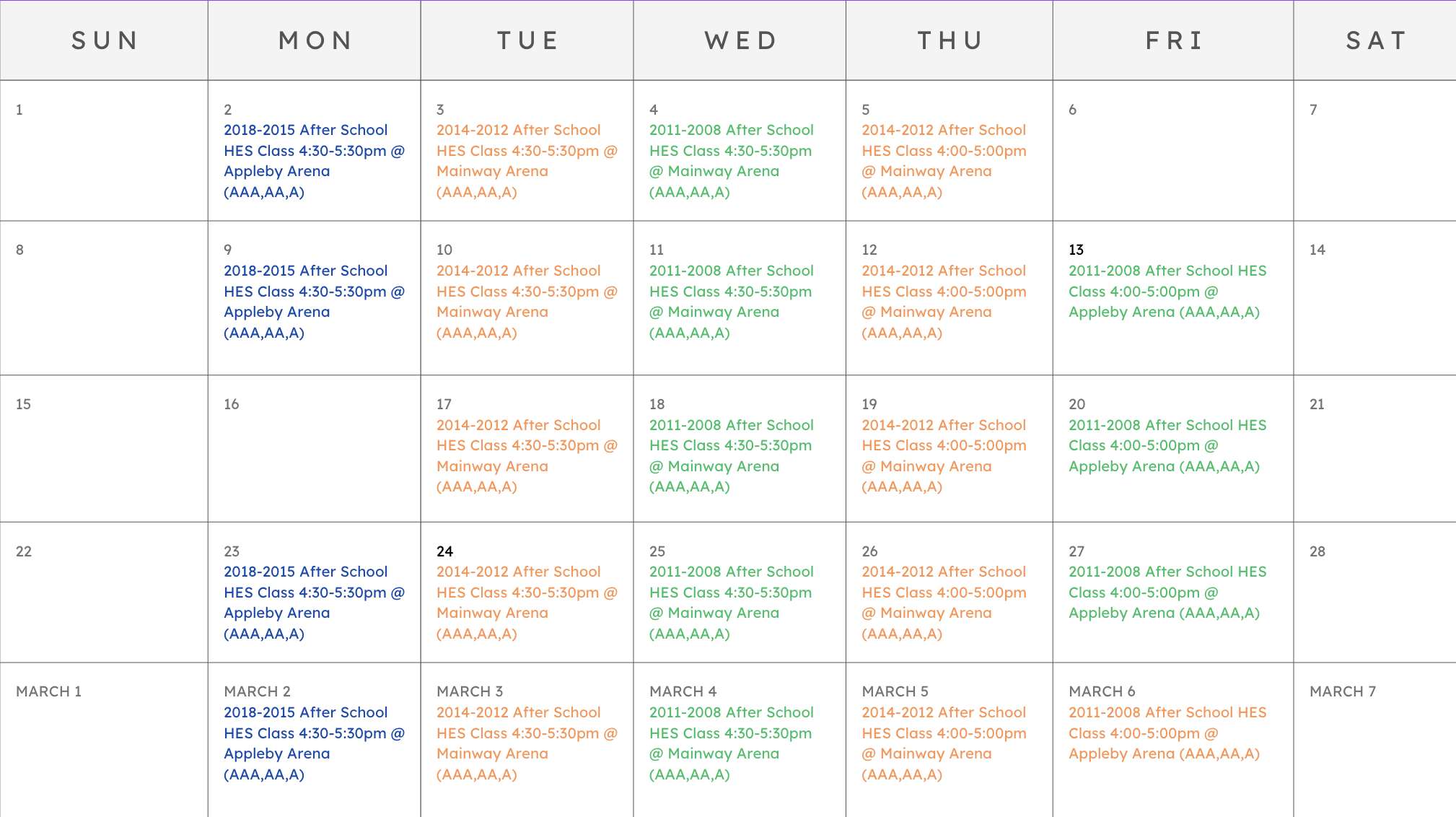 Upcoming HES Schedule